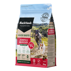 Black Hawk Healthy Benefits Joints & Muscles has been developed to support joint and muscle health in adult dogs. This tasty kibble contains natural sources of glucosamine and chondroitin for cartilage support, essential minerals like calcium and phosphorus for healthy joints and bones, and L-carnitine for fuelling strong, healthy muscles.